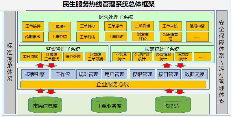 民生服務熱線管理系統包括訴求處理子系統、監督管理子系統、報表管理子系統和系統管理子系統。