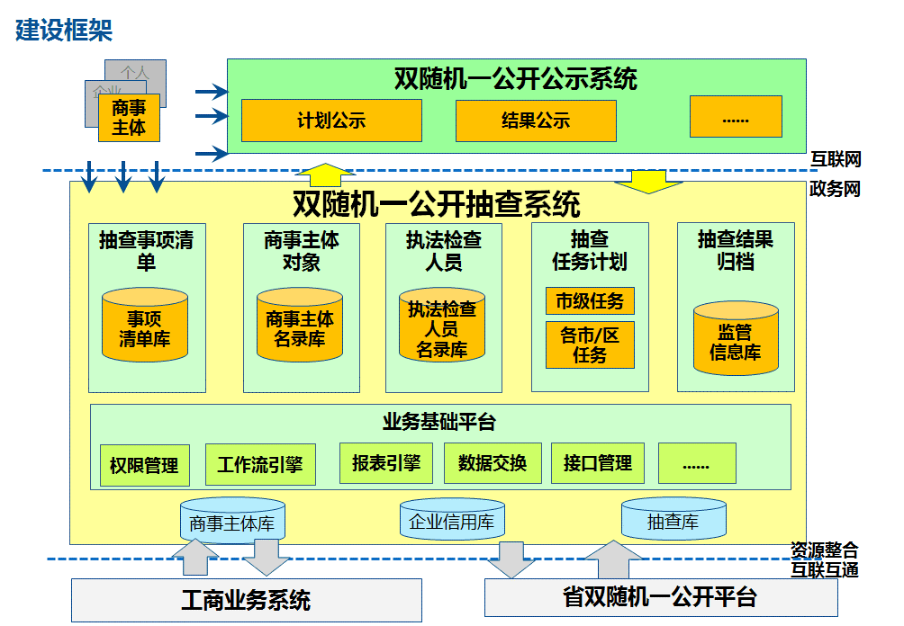 雙隨機(jī)一公開(kāi)系統(tǒng)是按照2015年8月5日國(guó)務(wù)院辦公廳發(fā)布的《國(guó)務(wù)院辦公廳關(guān)于推廣隨機(jī)抽查規(guī)范事中事后監(jiān)管的通知》要求開(kāi)發(fā)設(shè)計(jì)的,系統(tǒng)實(shí)現(xiàn)隨機(jī)抽取檢查對(duì)象、隨機(jī)選派執(zhí)法檢查人員的“雙隨機(jī)”抽查機(jī)制,嚴(yán)格限制監(jiān)管部門(mén)自由裁量權(quán)。建立健全市場(chǎng)主體名錄庫(kù)和執(zhí)法檢查人員名錄庫(kù),通過(guò)搖號(hào)等方式,從市場(chǎng)主體名錄庫(kù)中隨機(jī)抽取檢查對(duì)象,從執(zhí)法檢查人員名錄庫(kù)中隨機(jī)選派執(zhí)法檢查人員。對(duì)“雙隨機(jī)”抽查做到全程留痕,實(shí)現(xiàn)責(zé)任可追溯。同時(shí)依托全國(guó)企業(yè)信用信息公示系統(tǒng),及時(shí)公開(kāi)監(jiān)管信息,形成監(jiān)管合力。