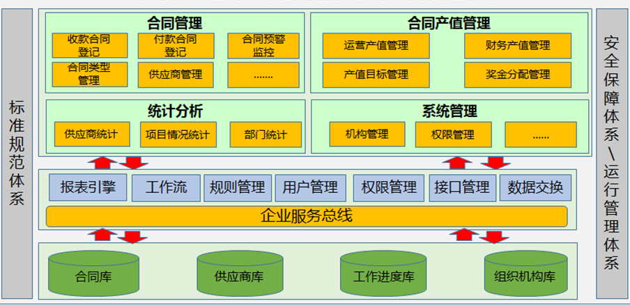系統(tǒng)功能包括合同管理子系統(tǒng)、合同產(chǎn)值管理子系統(tǒng)、合同統(tǒng)計分析子系統(tǒng)、系統(tǒng)管理子系統(tǒng)。