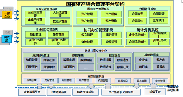 國有資產(chǎn)綜合管理平臺(tái)緊緊圍繞管資產(chǎn)、管人、管事三大業(yè)務(wù)鏈,以內(nèi)部管理為主線,以優(yōu)化管理為核心,以信息化為支撐和手段,綜合互聯(lián)網(wǎng)、大數(shù)據(jù)等新思維,按照頂層設(shè)計(jì)要求,形成“一平臺(tái)”的總體管理模式;全面推進(jìn)“互聯(lián)網(wǎng)+國有資產(chǎn)監(jiān)督管理”建設(shè),著力推動(dòng)形成“全面覆蓋、分工明確、協(xié)同配合、制約有力”的國有資產(chǎn)監(jiān)督管理體系,增強(qiáng)監(jiān)管的嚴(yán)肅性、權(quán)威性、時(shí)效性和針對(duì)性,有效服務(wù)企業(yè)和社會(huì)經(jīng)濟(jì)發(fā)展,促進(jìn)國資監(jiān)管信息化更好地服務(wù)于政府監(jiān)管部門做大國資決策,全面提升國有資產(chǎn)管理水平。